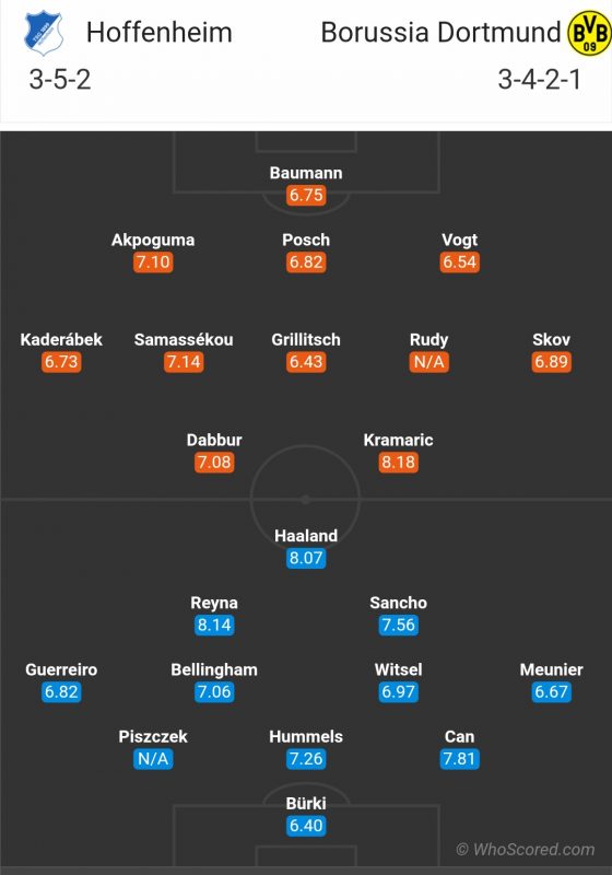 - 09/02/19: Borussia Dortmund 3 – 3 Hoffenheim