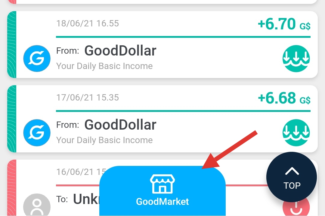 Selain cara diatas GoodDollar juga bisa dijual melalui market yang dibangun oleh komunitas Holder GoodDollar. Market GoodDollar dapat ditemukan dibawah halaman utama wallet GoodDollar.