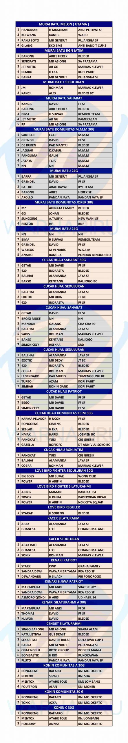 Mojokerto – Minggu 13 Februari, H Poer pemilik murai batu Melon, punya gawe kedua kalinya, lomba bertajuk Melon Cup 2 diadakan di gantangan RGN Sambiroto.
