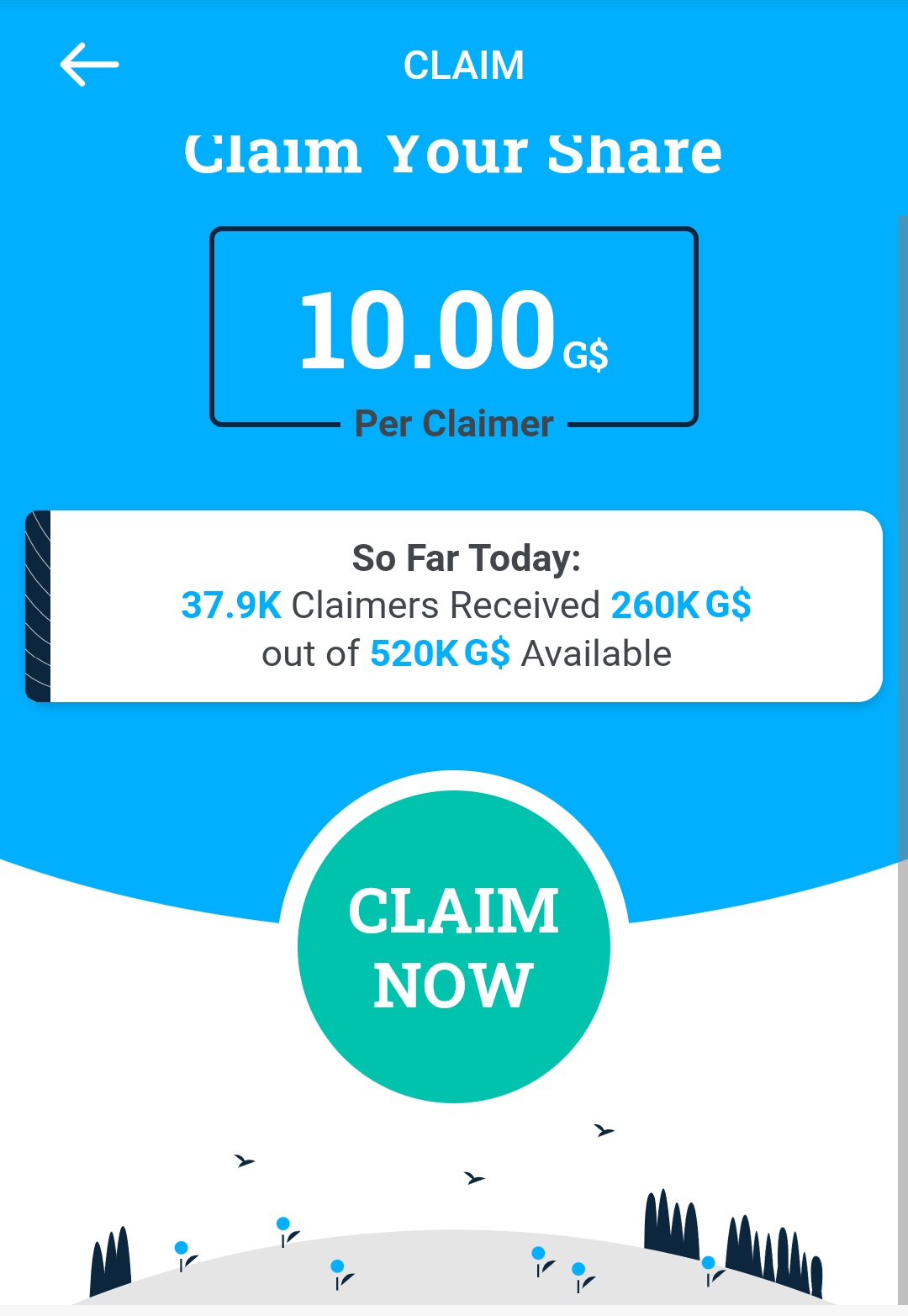 Jangan lupa untuk mengunjungi Anda setiap hari untuk klaim hadiah harian. Besaran bonus harian tergantung pada providernya mulai dari G$6 hingga G$20.