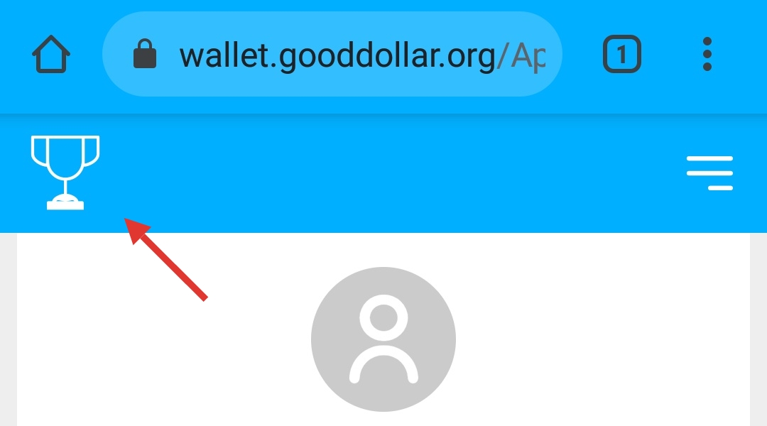 Masuk ke wallet GoodDollar lalu klik simbol piala di kiri atas.