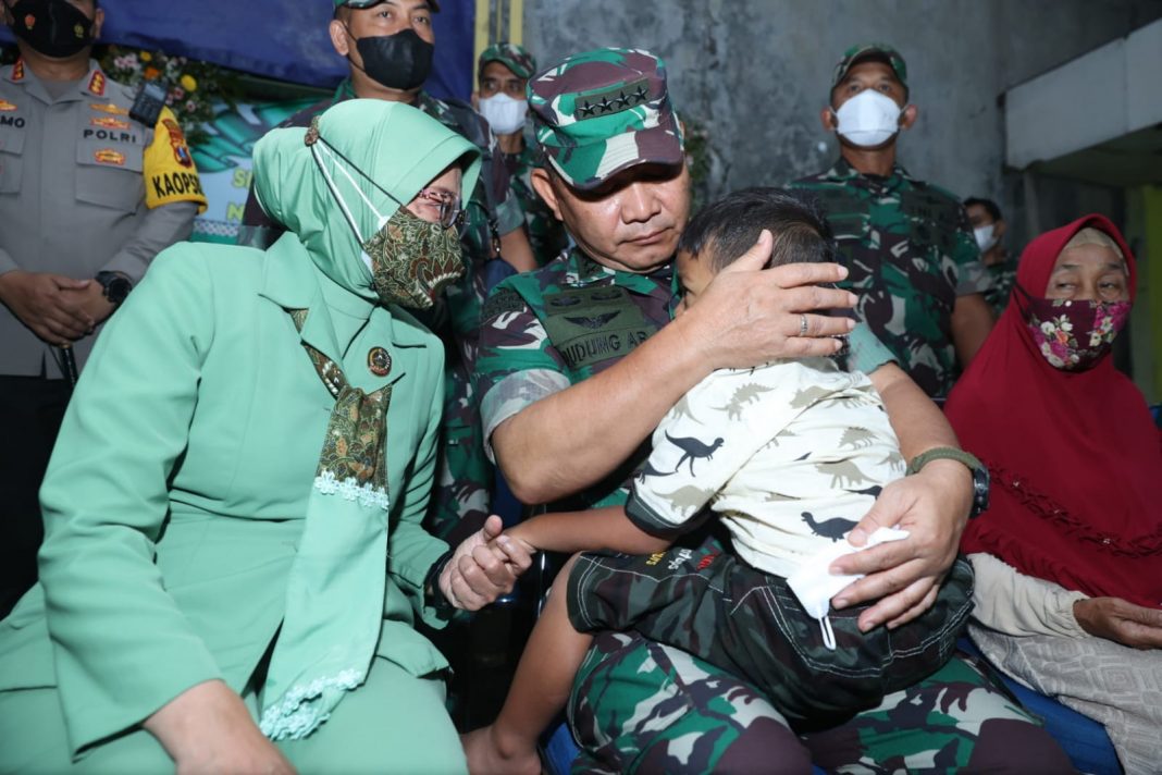 Kasad Dudung Abdurachman tak kuasa menahan air matanya menetes saat bersama Vano (5 tahun), salah satu putra tercinta Alm. Sertu Eka.