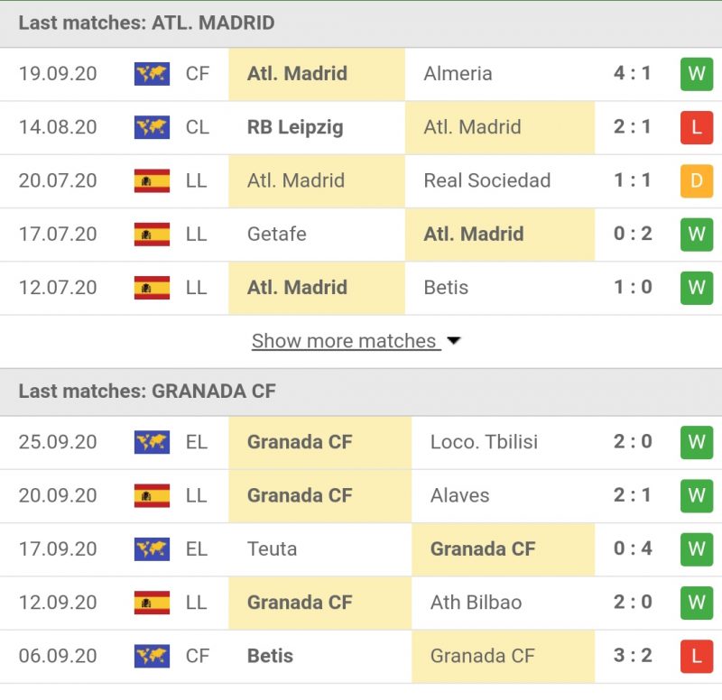 Granada, seperti yang telah disebutkan diatas, telah membuat awal yang mengesankan untuk kampanye 2020-21 mereka, dibuka dengan kemenangan 2-0 atas Athletic Bilbao pada 12 September sebelum mengalahkan Alaves 2-1 di kandang sendiri akhir pekan lalu.