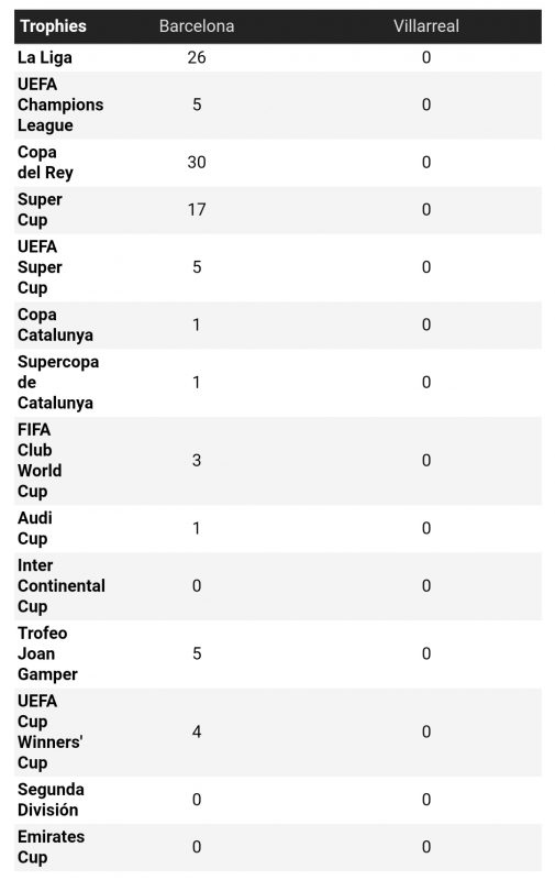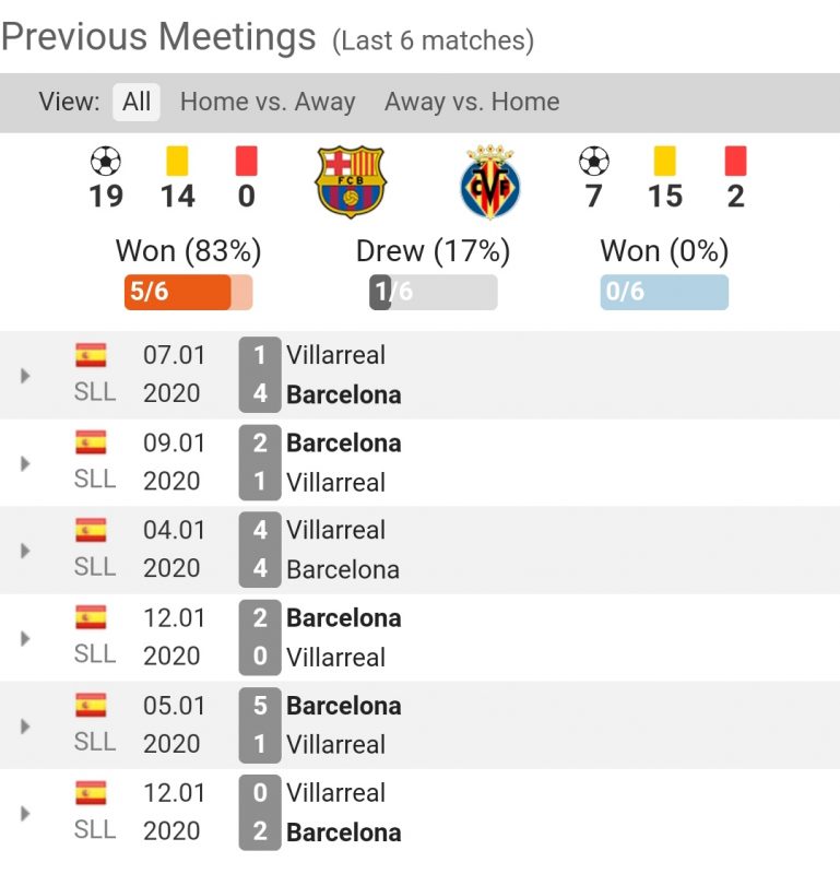 El Submarino Amarillo belum benar-benar mengalahkan Barca di La Liga sejak Maret 2008, dan telah kalah enam dari tujuh pertemuan terakhir mereka dengan raksasa Catalan di papan atas Spanyol.