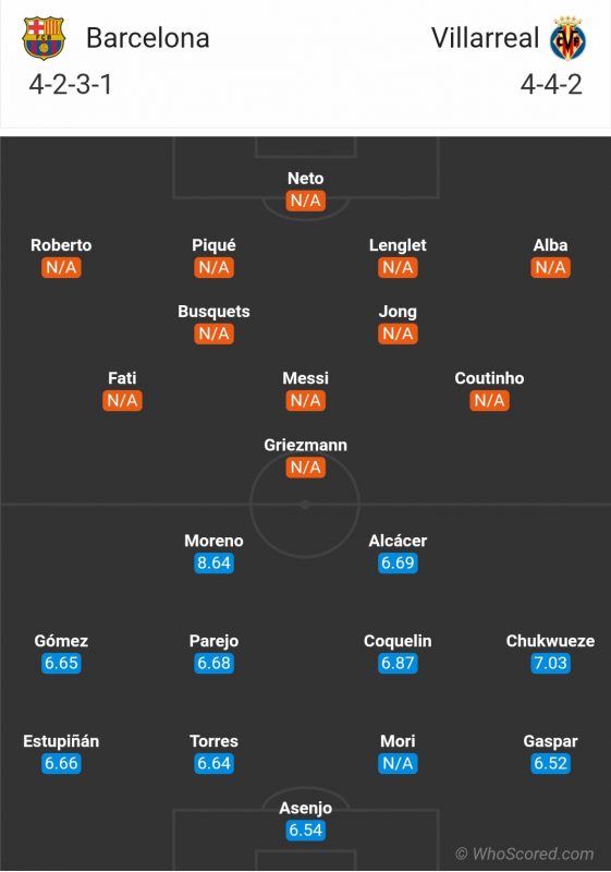 - Philippe Coutinho dan Ansu Fati sama-sama bisa mendapatkan start bersama Messi dan Antoine Griezmann di lini serang, dengan Frenkie de Jong dan Sergio Busquets berpotensi berbaris di tengah lapangan.
