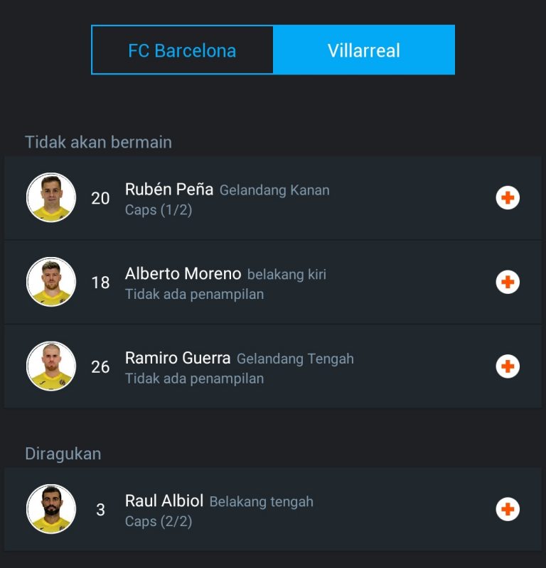 - Adapun Villarreal, Alberto Moreno, Ramiro Guerra dan Ruben Pena pasti tidak tersedia karena cedera, sementara Raul Albiol mengalami patah hidung dan karena itu bisa kehilangan tempat di XI.