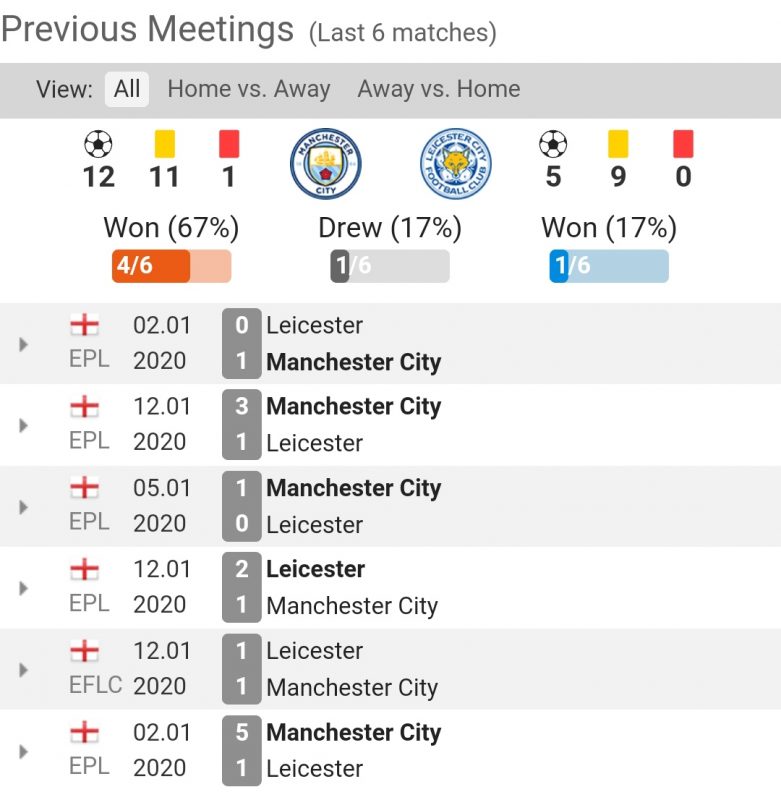 Dengan Kevin de Bruyne, Gabriel Jesus, Phil Foden dan Raheem Sterling sudah siap, The Citizens memiliki kekuatan untuk mengalahkan Leicester lagi akhir pekan ini, dan dengan rekor luar biasa enam kemenangan dalam tujuh pertemuan terakhir mereka di Liga Premier dengan The Foxes, satu lagi. Kemenangan menarik Man City sudah diantisipasi.
