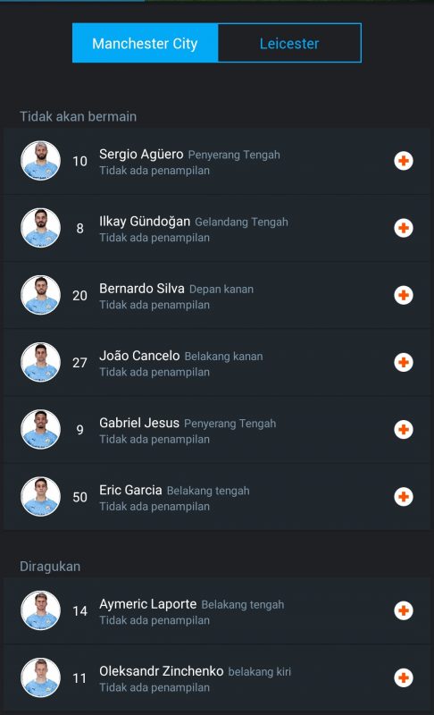 - Bernardo Silva, Joao Cancelo, Oleksandr Zinchenko dan Nicolas Otamendi juga tetap absen karena cedera.