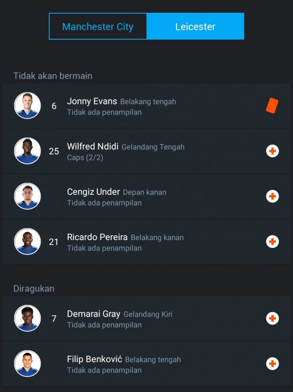 - Penderitaan cedera Leicester tidak terlalu jauh lebih baik, dengan headline absennya Wilfred Ndidi setelah gelandang itu absen hingga tiga bulan karena cedera adduktor yang membutuhkan operasi.