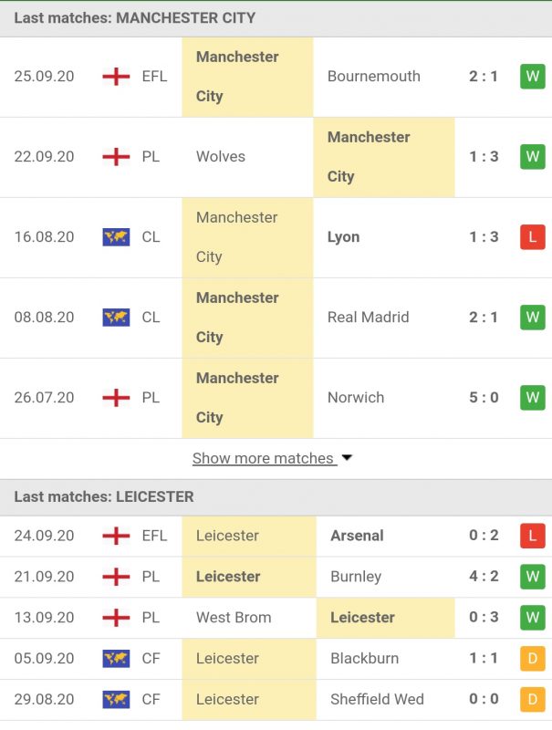 Pertandingan Liga Primer musim 2020/21 pekan ke-3 antara Manchester City dengan Leicester City akan berlangsung pada hari Minggu 27 September 20 pukul 23.30 WIB – Etihad Stadium
