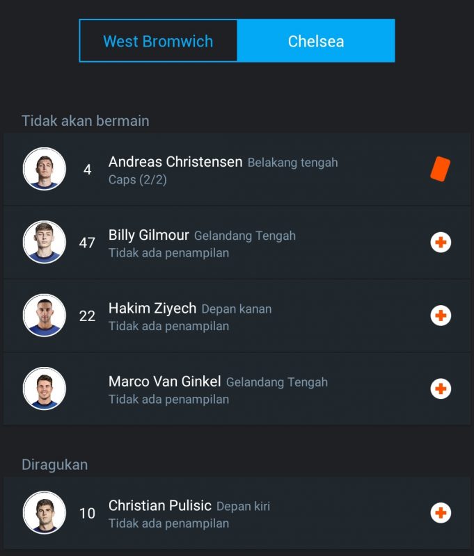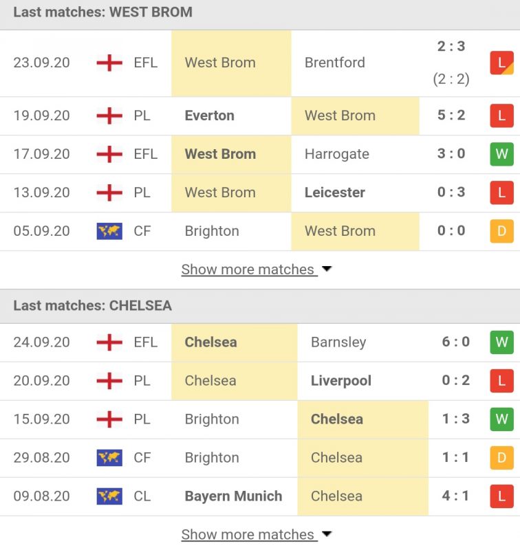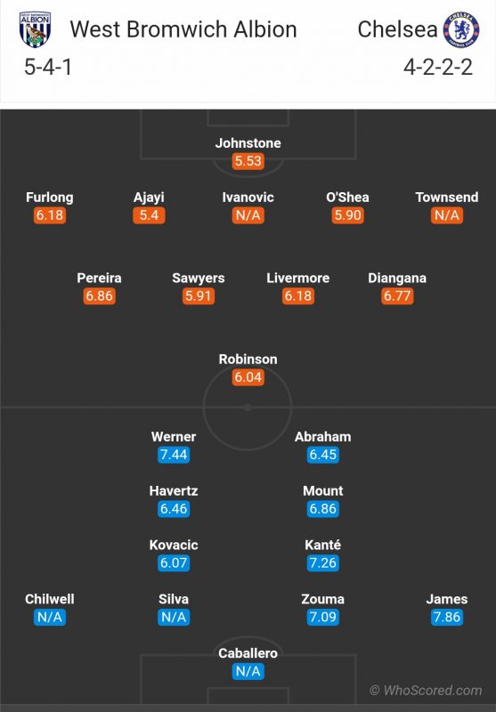 Timo Werner diistirahatkan untuk tamasya tengah pekan itu dan masih menunggu gol kompetitif pertamanya untuk Chelsea, tetapi penantian itu bisa saja berakhir pada hari Sabtu. Kualitas Werner tidak diragukan lagi setelah mencetak 28 gol Bundesliga musim lalu dan dia akan mendapatkan banyak kesempatan untuk Chelsea melawan pertahanan Baggies yang telah kebobolan sepuluh gol dalam empat pertandingan kompetitif musim ini.