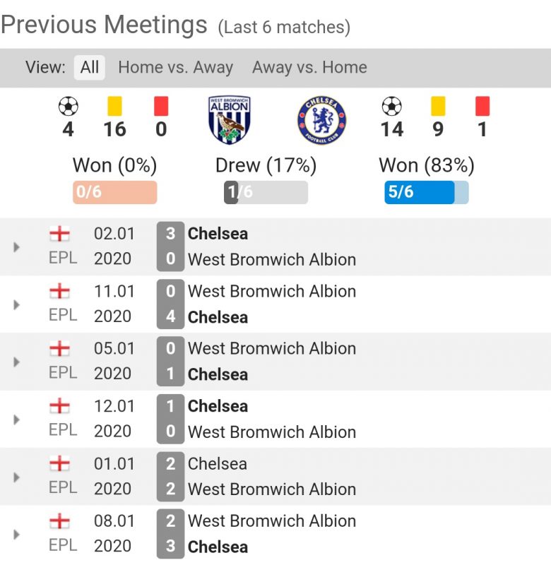Pertandingan Liga Primer musim 2020/21 pekan ke-3 antara West Bromwich dengan Chelsea akan berlangsung pada hari Sabtu 26 September 2020 pukul 23.30 WIB di Stadion The Hawthorns. Baggies keluar dari papan bawah menuju papan atas