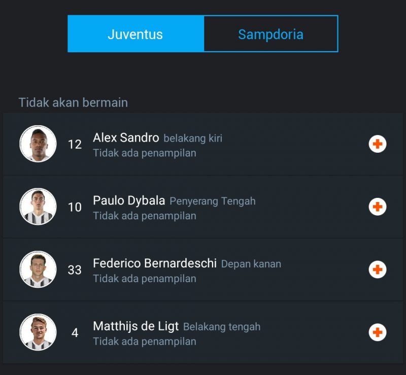 - Alex Sandro juga diragukan karena masalah otot yang dia alami saat latihan.