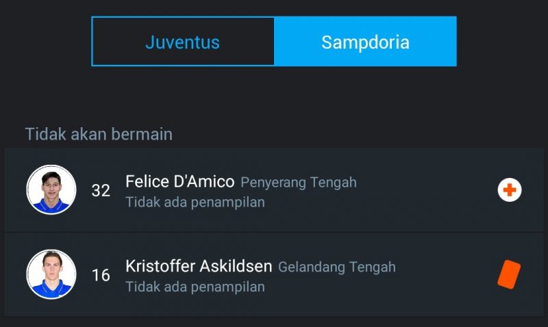 - Felice D’Amico tidak dapat dipertandingkan karena cedera.