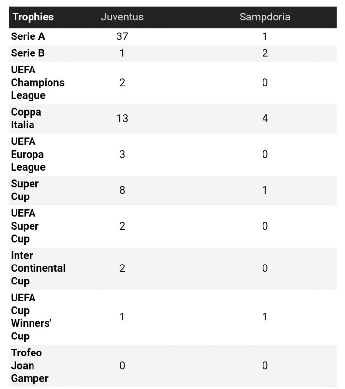 Sang Nyonya Tua memenangkan Serie A untuk kesembilan kalinya berturut-turut musim lalu, sementara Sampdoria mengakhiri musim di posisi ke-15 di klasemen, setengah dari 38 pertandingan liga mereka mengalami kekalahan.