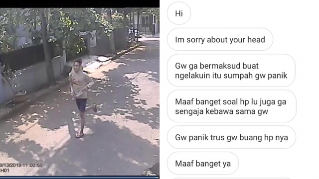 Setelah melakukan aksinya pelaku ini menghubungi AF lewat Instagram. Dalam pesannya itu pelaku meminta maaf atas kepala AF yang terluka. Dikatakan bahwa pelaku melakukan pemukulan karena panik. Selain itu pelaku menjelaskan dia hanya berniat melakukan hubungan seksual bukan merampok.