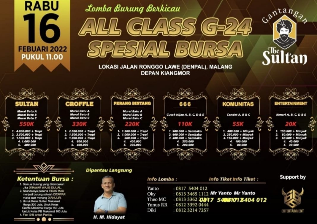 Malang – Ada yang berbeda dengan jadwal rutin tiap hari Rabu Gantangan The Sultan, karena pada tanggal 16 Februari, seperti biasa all class G-24 namun tema kali ini mengambil tajuk Spesial Bursa.